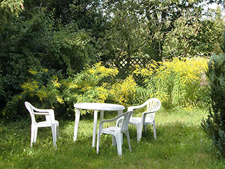 Haus am Schloßpark........................................................Naturgarten hinterm Haus.............................................Sitzecken und Feuerplatz